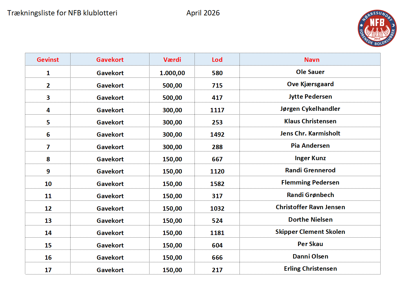 Kun i Trækning april 2026