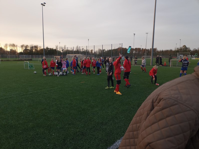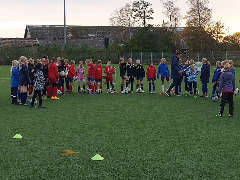 Der var mødt knap 45-50 piger op fra 7-8 forskellige klubber til træningen på Voerbjergvej. Trænerne Martin, Louise og Camilla fra AaB Pige Akademi kørte i 1 ½ time de mange piger igennem en række øvelser hvor temaet var ”vendinger”.