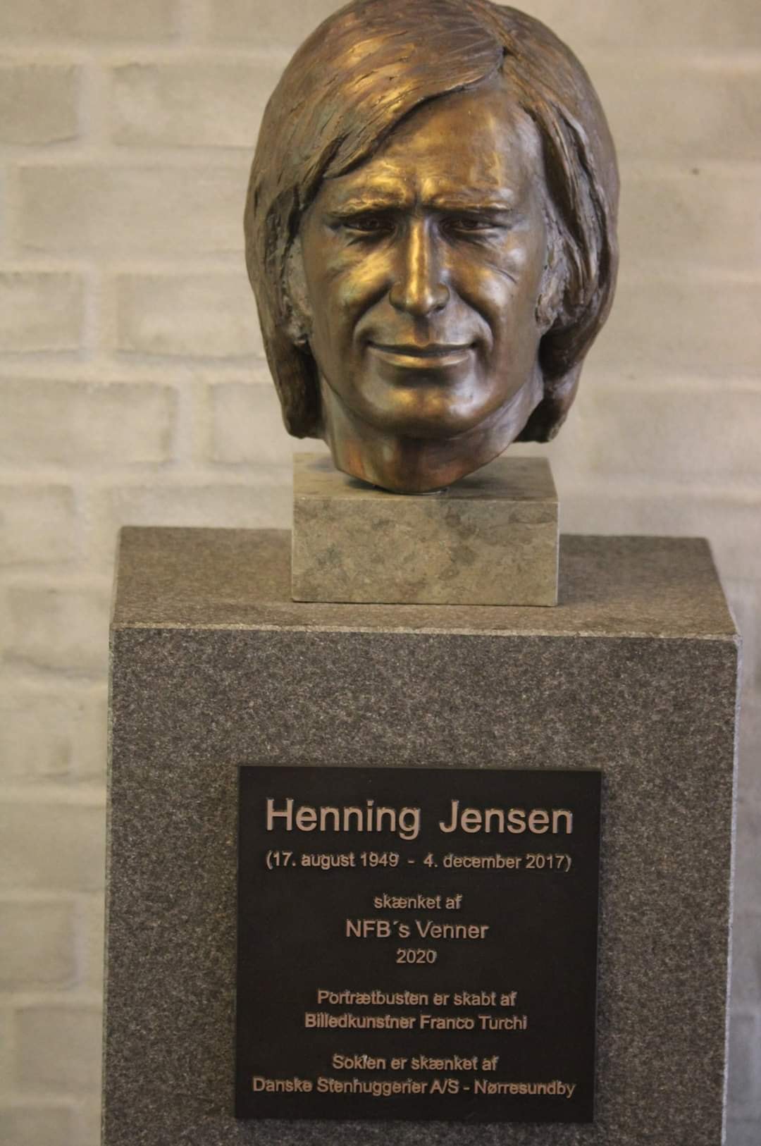 Nedenfor ses busten af Henning Jensen der står i klubhuset på Voerbjergvej.