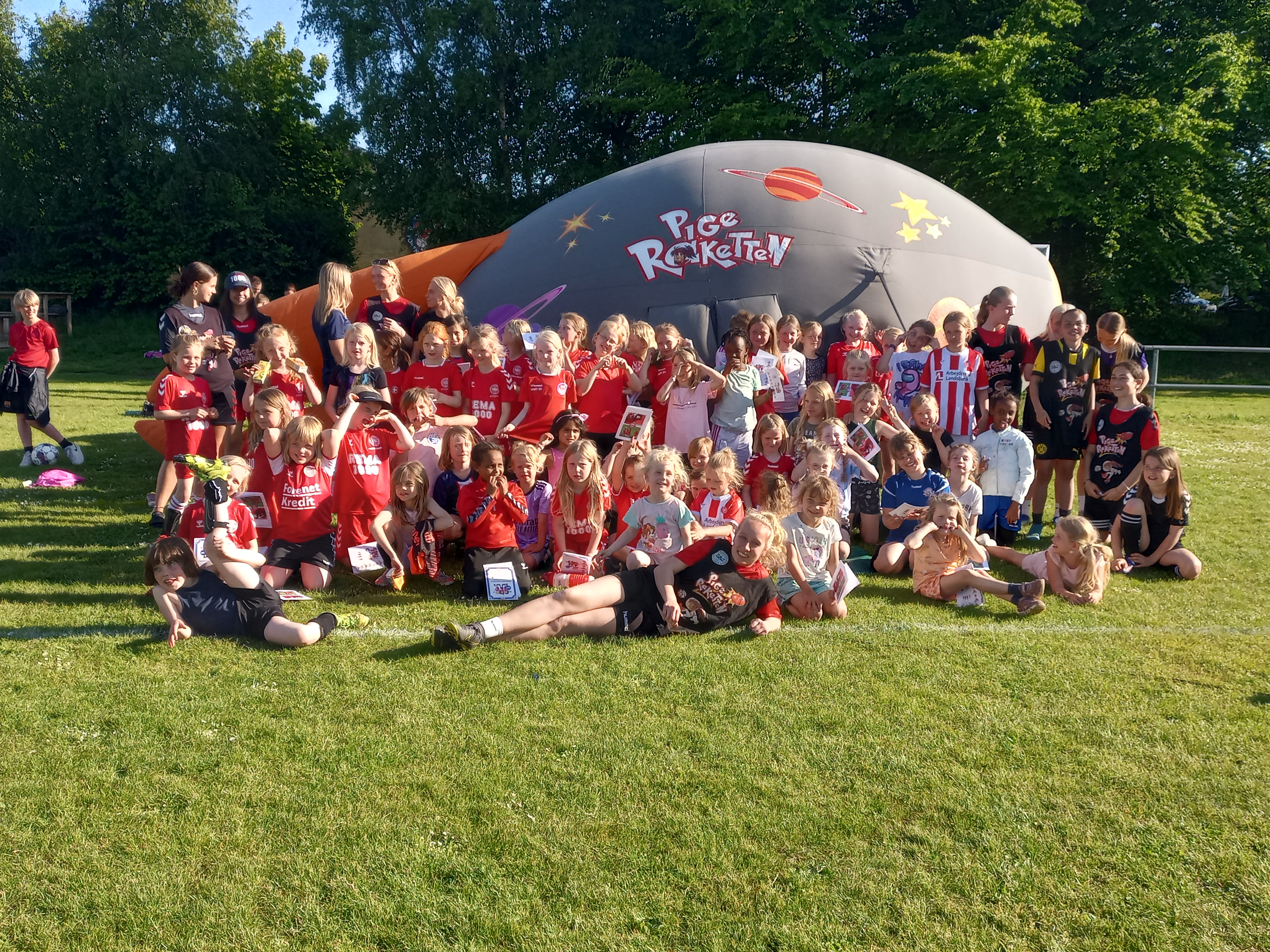 Piger i alderen fra 5 år til 11 år deltog tirsdag i DBU pigeraketten igen var landet på Lerumbakken.