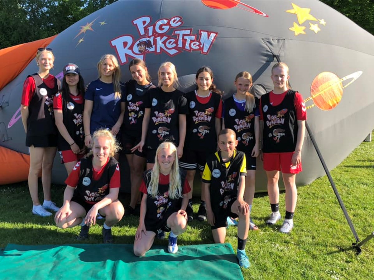 Piger fra U13 og U18 hjalp til ved pigeraketten - her et billede af pigerne og - tak for hjælpen.