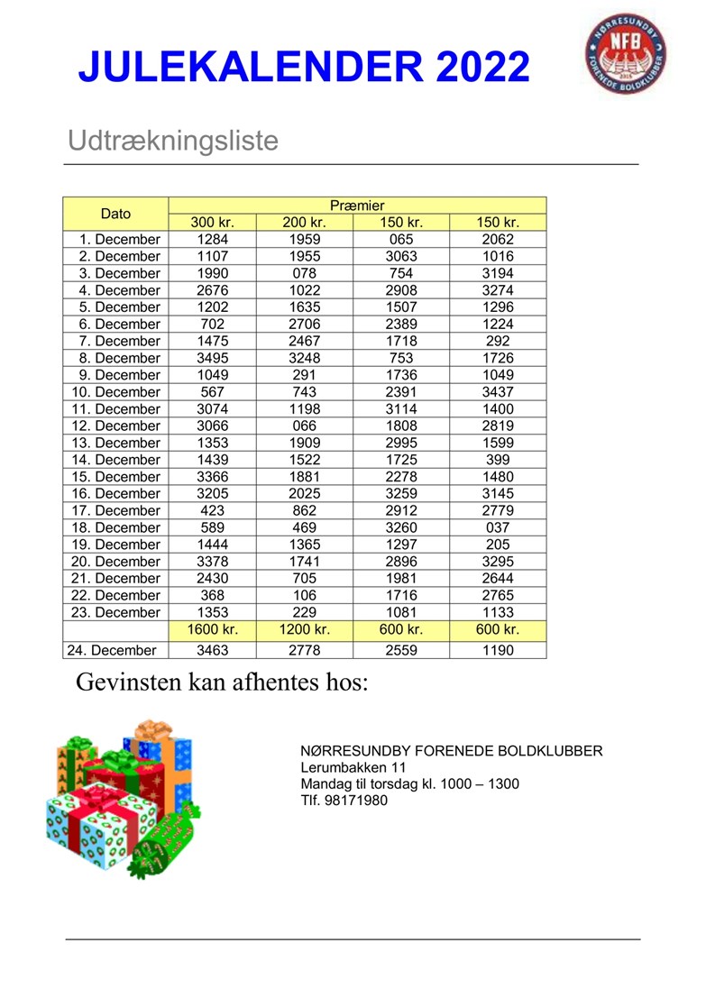 UDTRÆKNING JULEKALENDEREN 2022 - SE NUMRE OG PRÆMIER - klik her!