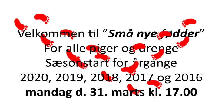 Velkommen Små Nye Fødder mandag d. 31. marts kl. 17 på Tumleren på Lerumbakken