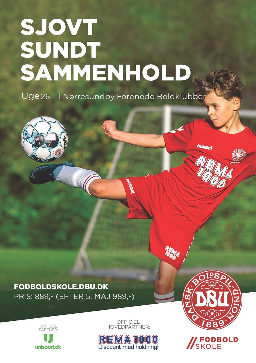 Hvis du ikke allerede ved det, så ved du det i alt fald nu: Nørresundby FB holder DBU Fodboldskole i uge 26 i 2021 – og det er jo alletiders mulighed for at være sammen med nogle af klubkammeraterne i sommerferien.
